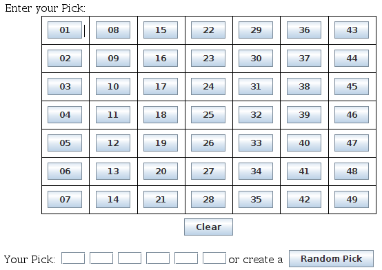 Lottery Numbers Sheet , Choose Six Numbers From 1 Through 42.